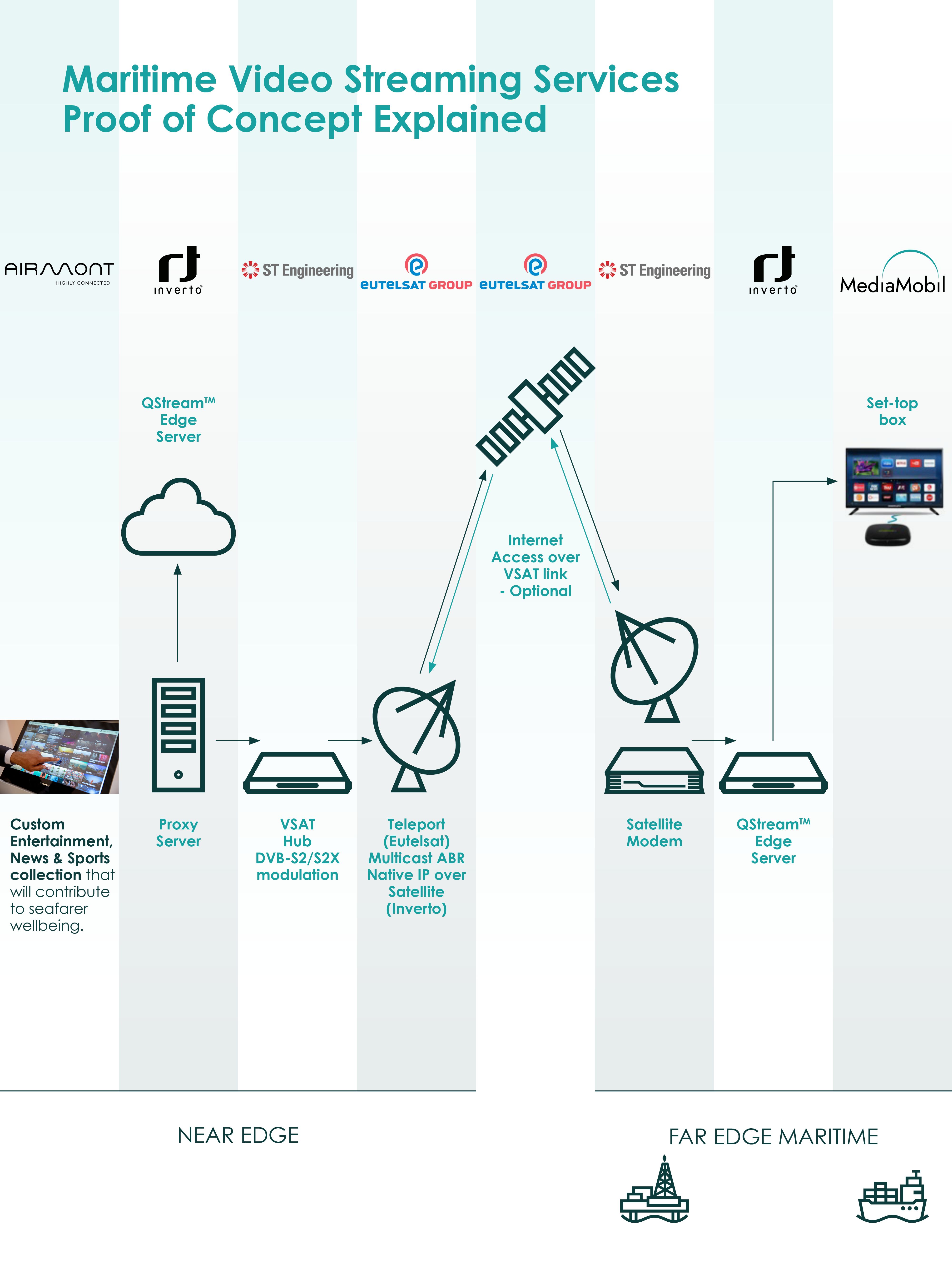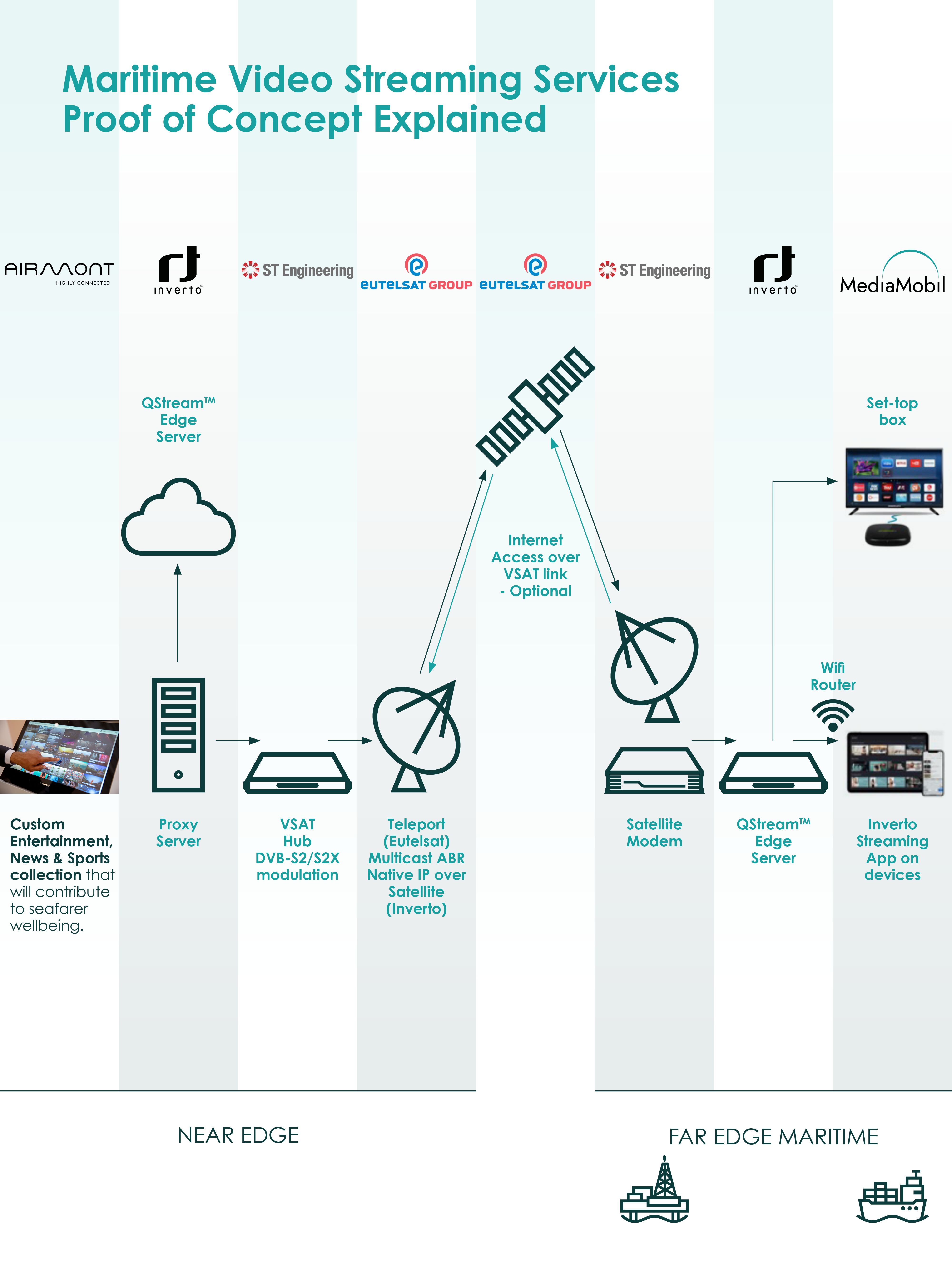 The PoC that is being carried out by MediaMobil, Eutelsat, Inverto, Airmont and ST Engineering iDirect will enable crew to feel at home on board their vessel, with easy access to familiar content as well as content that is new and interesting to them.
